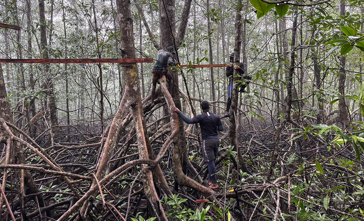 How do you go from working in a controlled environment like a laboratory, where the temperature is stable, there is electricity, internet, food, and predictable schedules, to doing research in a rainy place where the temperature exceeds 30°C and humidity is close to 100%; where equipment depends on the sun to power up, tides dictate schedules, and where you have to climb mangrove roots to install instruments?